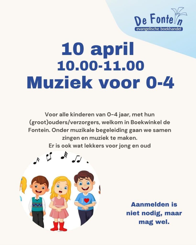 Op vrijdagochtend 10 april zijn alle kinderen van 0 tot 4 jaar, met hun (groot)ouders/verzorgers, welkom in Boekwinkel de Fontein....